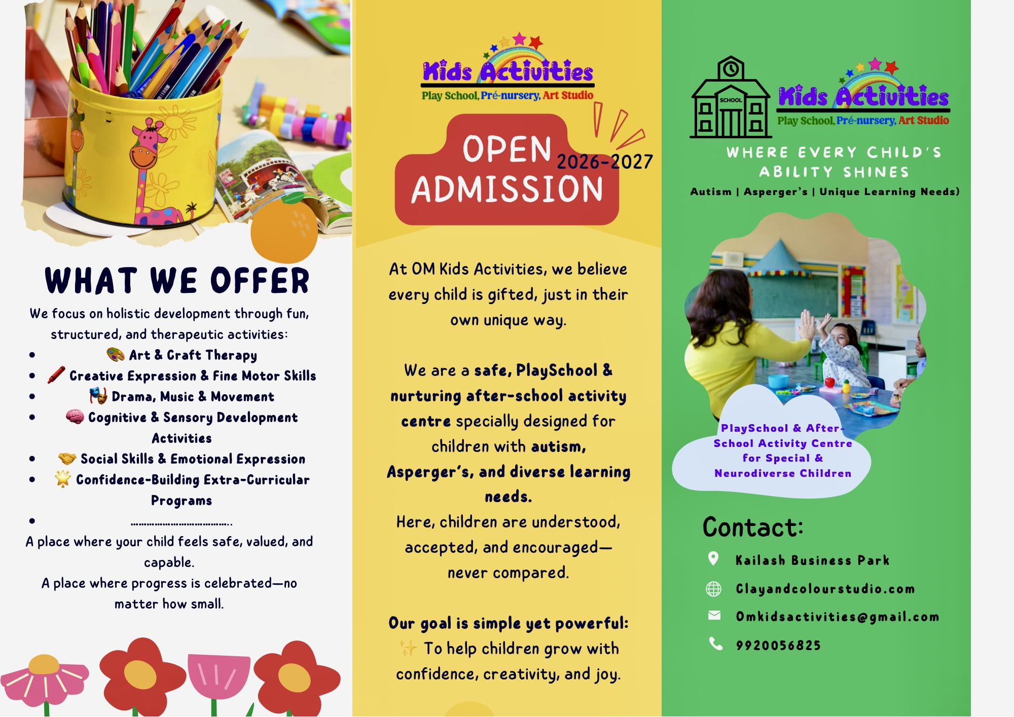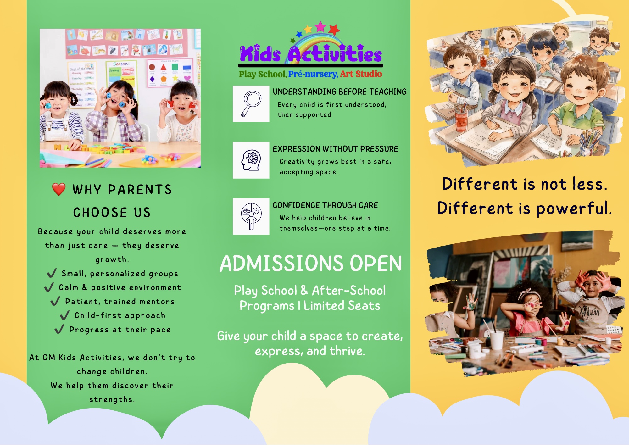 At OM KIDS ACTIVITIES, we create a nurturing and joyful environment where little ones explore, discover, and learn in a space that feels just like home!